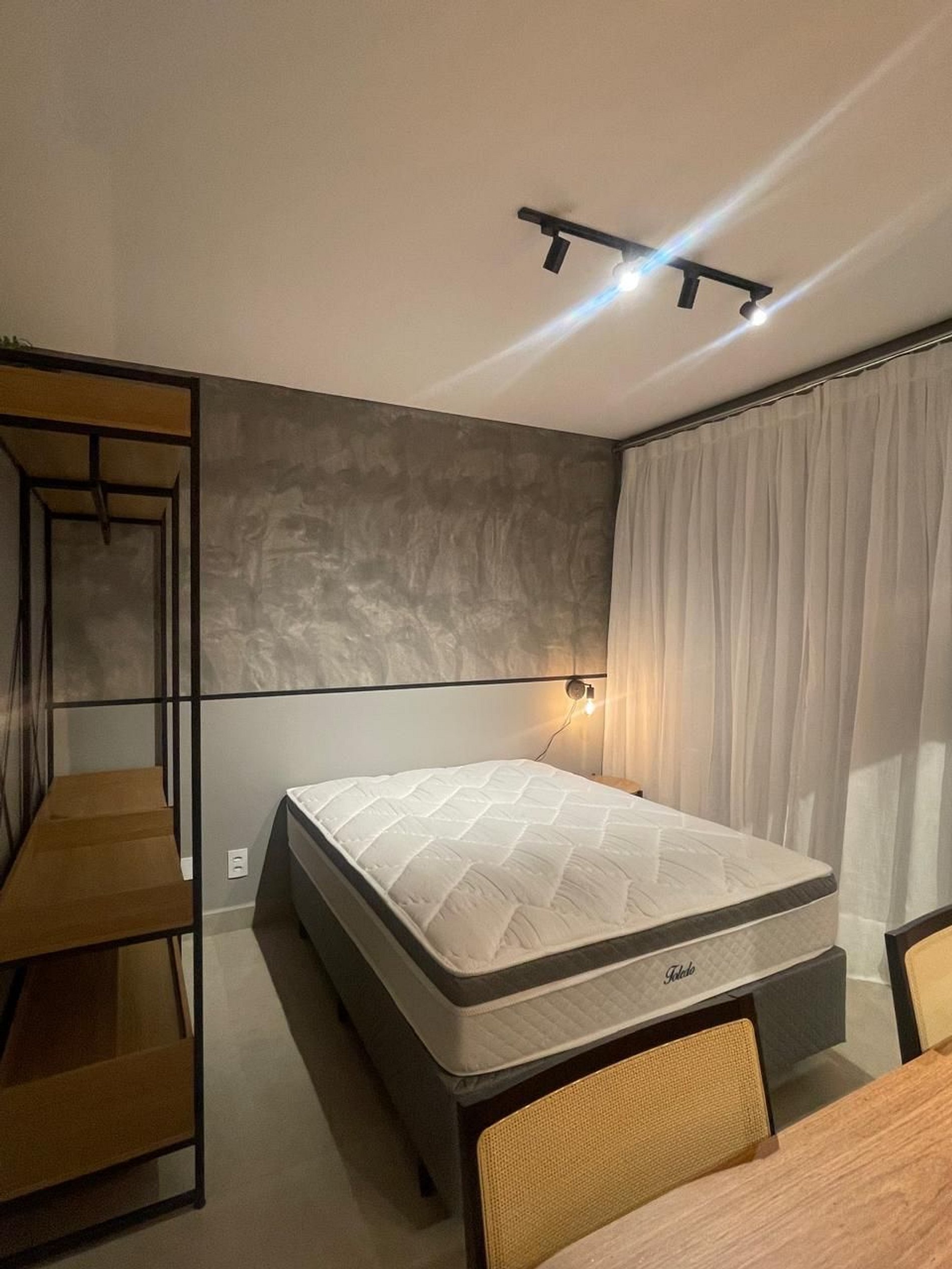 Ambiente Aconchegante e Funcional: O studio foi projetado para proporcionar uma experiência intimista e prática, com uma decoração moderna, mas acolhedora. Cada detalhe, como a cama de casal com roupas de cama macias e branquinhas e o banheiro com souvenirs, foi pensado para criar um ambiente único e convidativo.