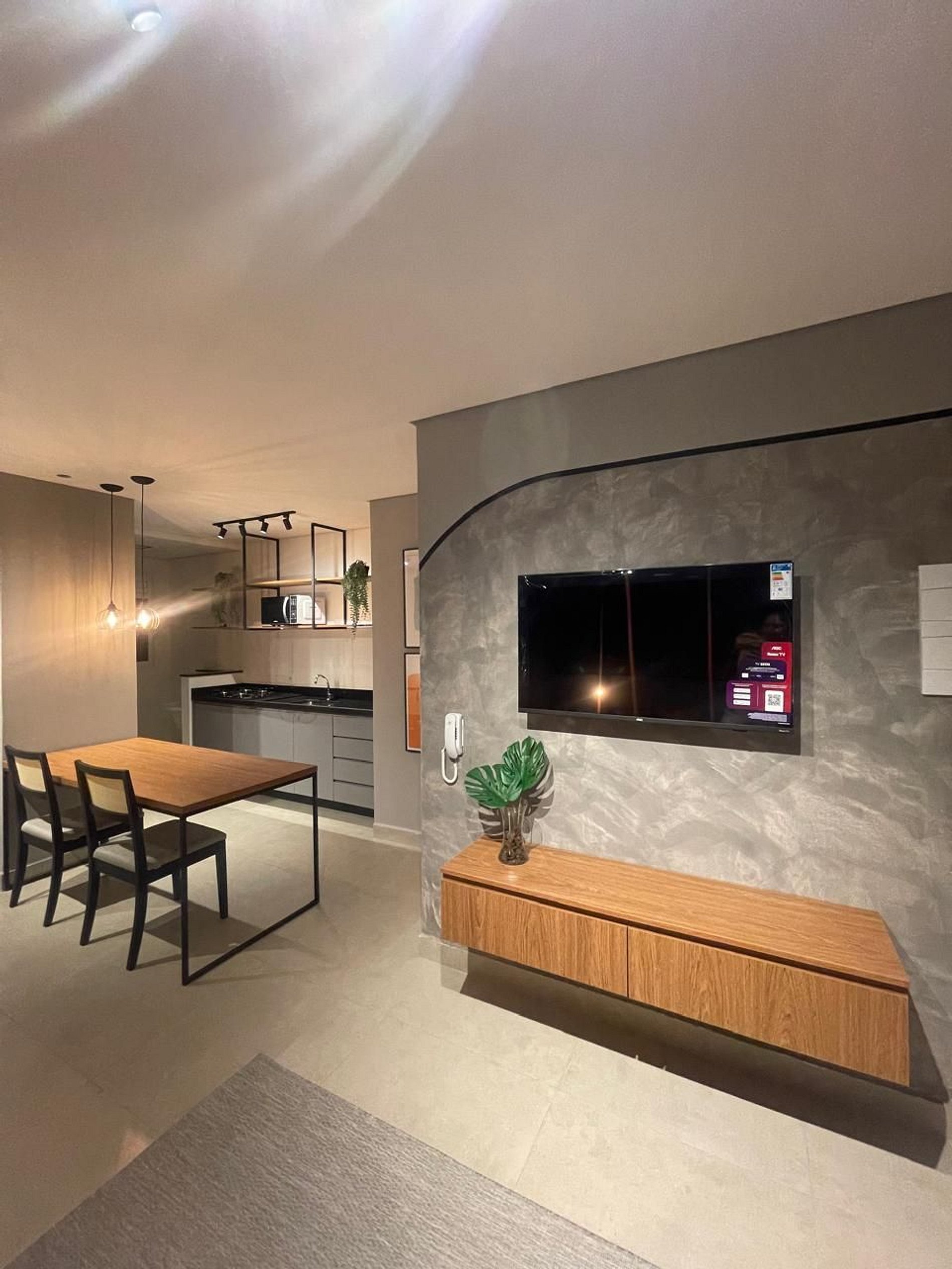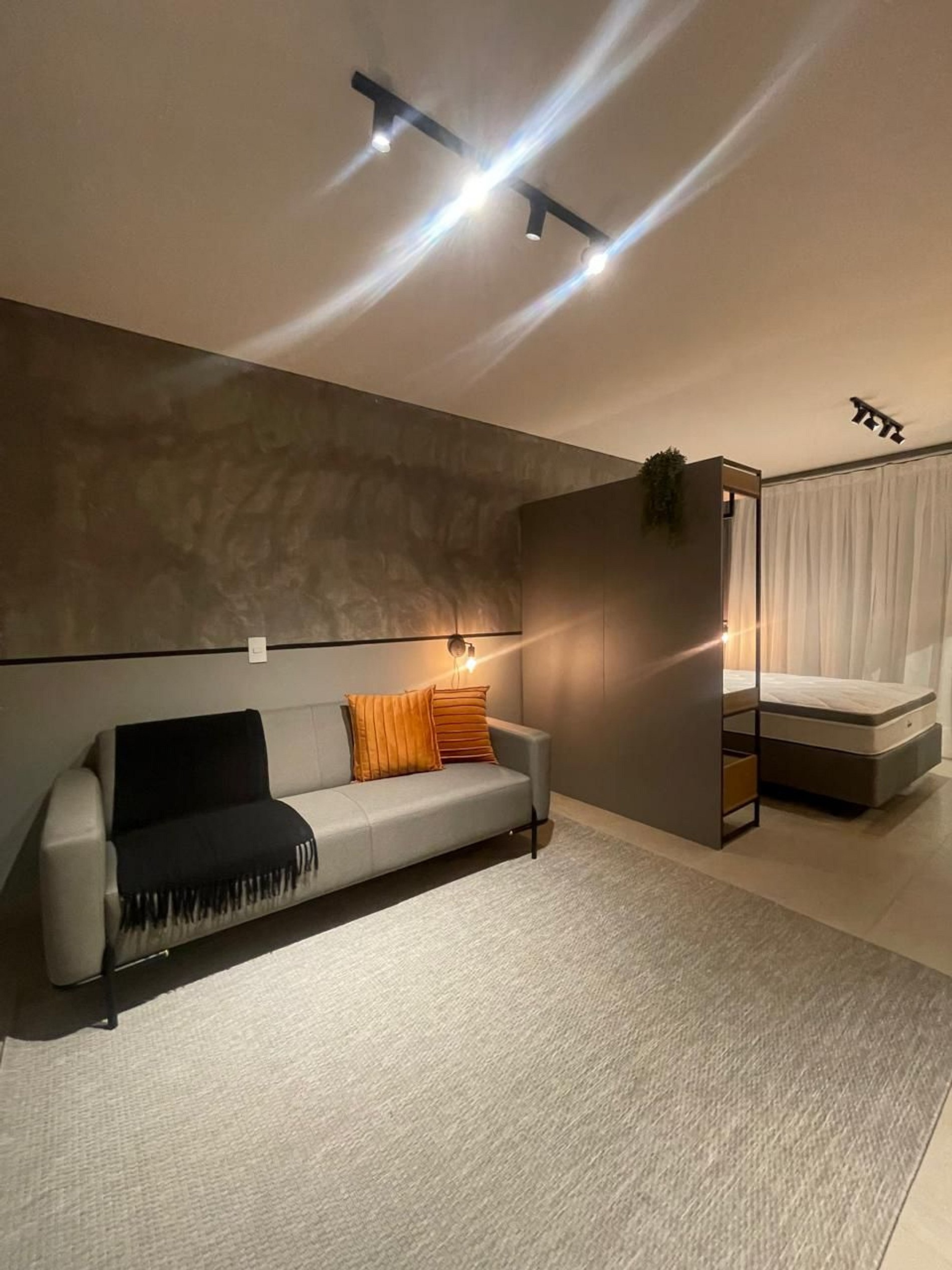 Ambiente Aconchegante e Funcional: O studio foi projetado para proporcionar uma experiência intimista e prática, com uma decoração moderna, mas acolhedora. Cada detalhe, como a cama de casal com roupas de cama macias e branquinhas e o banheiro com souvenirs, foi pensado para criar um ambiente único e convidativo.
