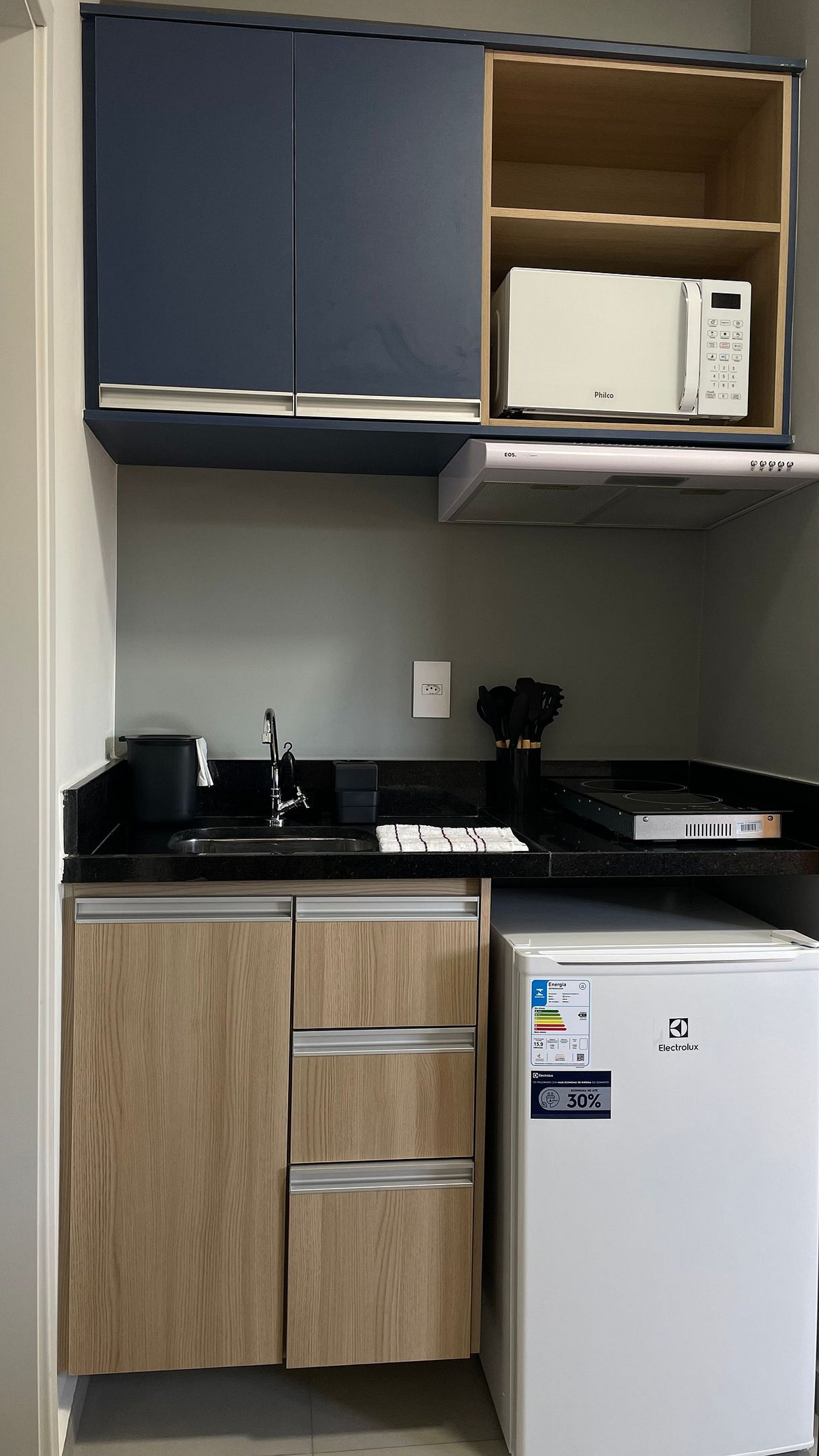 Cozinha Completa: equipada com cafeteira, liquidificador, sanduicheira, cooktop de 2 bocas, micro-ondas, frigobar e uma gama completa de utensílios, como panelas, pratos, copos, talheres e xícaras. Tudo pronto para que você prepare suas refeições com praticidade. Conforto e Estilo: o ambiente oferece um colchão de casal super confortável, roupas de cama e toalhas brancas e macias, bancada multifuncional para estudos e refeições e um chuveiro com ótima pressão para um banho relaxante. Conexão e Entretenimento: desfrute de internet Wi-Fi de alta qualidade e uma Smart TV de 43” para assistir aos seus filmes e séries favoritos. Climatização: o ar-condicionado garante que você se sinta confortável em qualquer estação do ano.